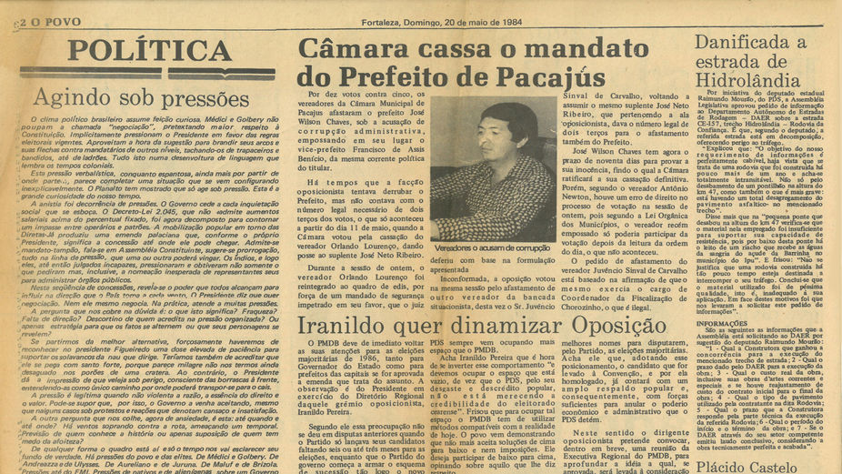 A cada três prefeitos eleitos, dois, em média, são cassados em Pacajus